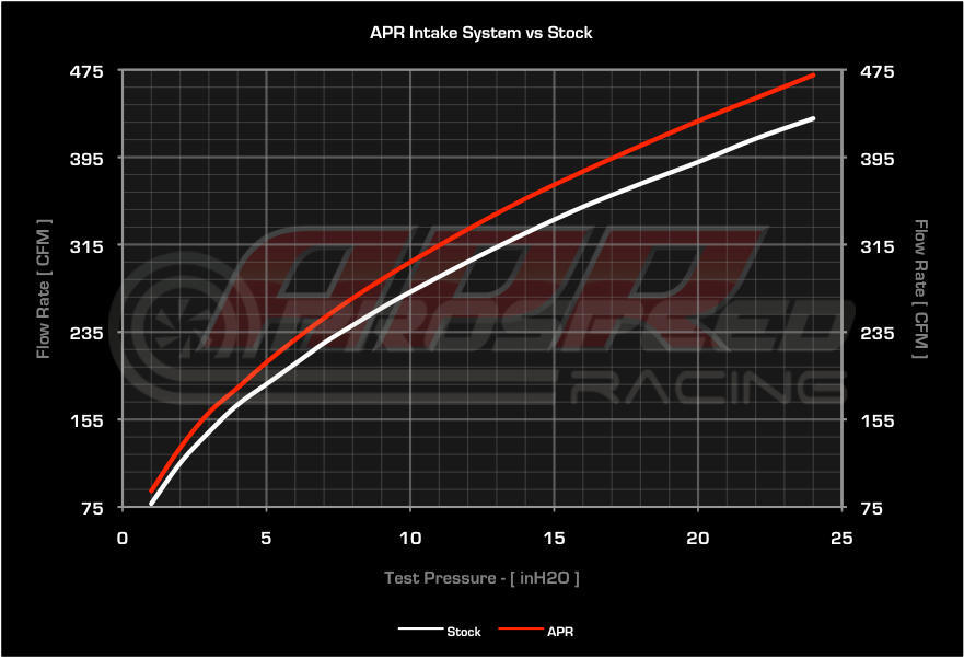 Uncommon to most in the market today, APR spared no expenses during the research and development period. For the better part of a year, APR’s Mechanical Engineers created several prototype intake designs utilizing our in house Sterolithography 3D printer and other rapid prototyping techniques. Various filter mediums were tested in conjunction with the new intake designs through simulated models, flow bench analysis, dyno data collection and in real world applications all in an effort to derive the best possible solution. To increase performance over the factory intake system, the intake system’s ability to flow a higher mass of air is critical. In order to achieve this, APR’s Mechanical Engineers focused on improving the pressure ratio between the inlet and outlet of the intake system, reducing turbulence, maximizing filter efficiency and keeping IAT as low as possible.