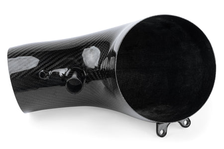 Adding the optional APR Intake Filter completely transforms the APR Turbocharger Inlet System from subtle to extreme. Our massive 9" long cotton filter with frontal opening connects to a 6" carbon fiber inlet tube that gradually necks down to the 4" back tube. You will hear every ounce of the 5-cylinder turbocharger system's massive demand for airflow, and you'll do so at a 60% CFM improvement over stock! This was only possible with an open filter system as the airflow demands called for an unboxed design. Simply put, this is the best intake system on the market for satisfying uncompromisingly demanding airflow requirements.