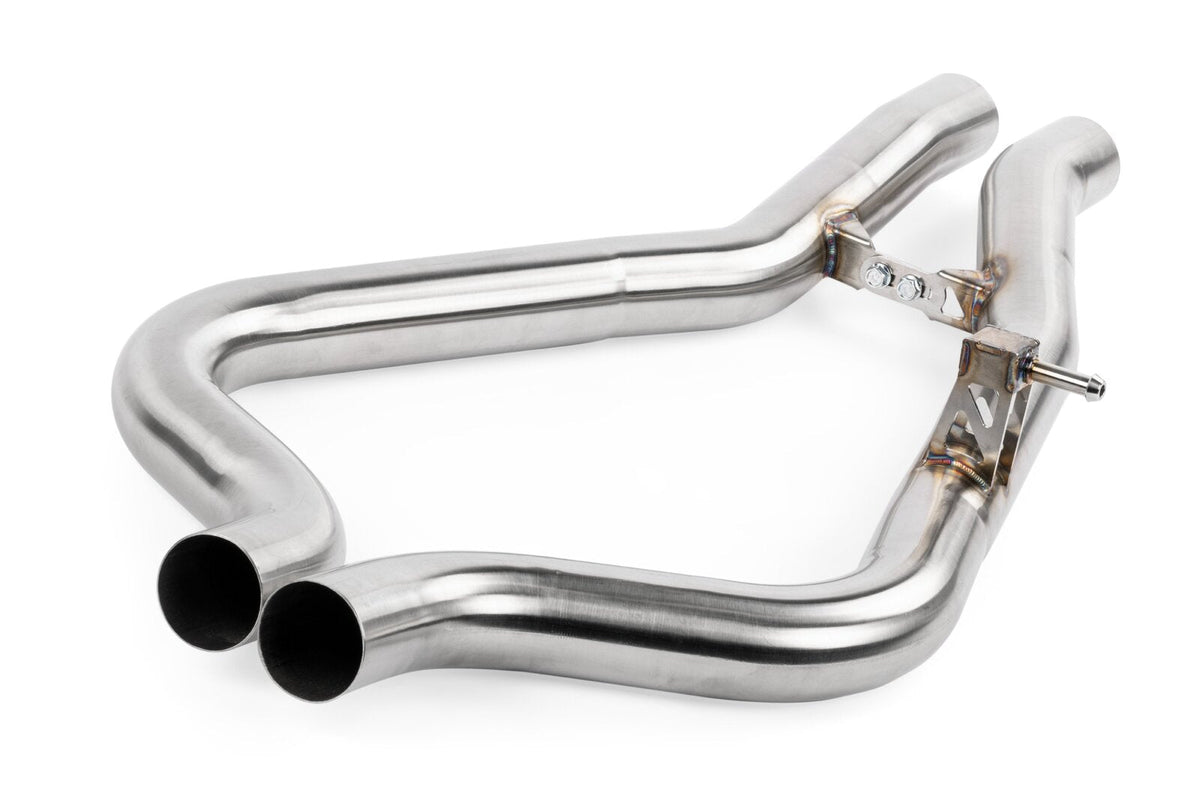 Our system features two valves that allow control of the volume of the system via the factory exhaust valve actuators. In doing so, the system can go from tame to aggressive instantly! Unlike pneumatic systems, and other common valves found in the market today, our system maintains identical OEM operation all the way down to the factory valve actuation angles. Furthermore, the system is fully compatible with exhaust remotes, allowing end users to manually open the system at the click of a button. We cast the valve housings out of T304 stainless-steel. Internally the system uses CNC-machined T303 components and brass bushings, which have stood up to our extreme torture testing. All necessary hardware is welded into place and is designed to combat heat and vibration for years to come.