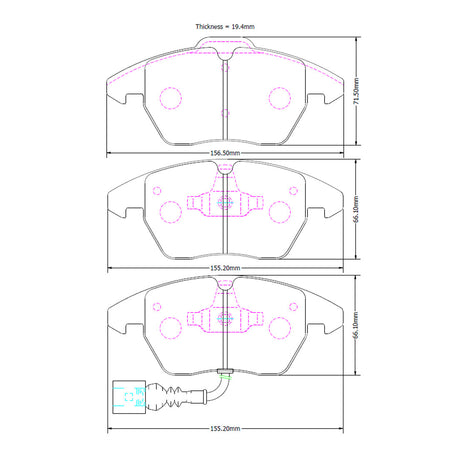 APR Direct Replacement Brake Pads Front Audi A3 8P/VW Golf GTi Mk5/Mk6/Jetta Mk6