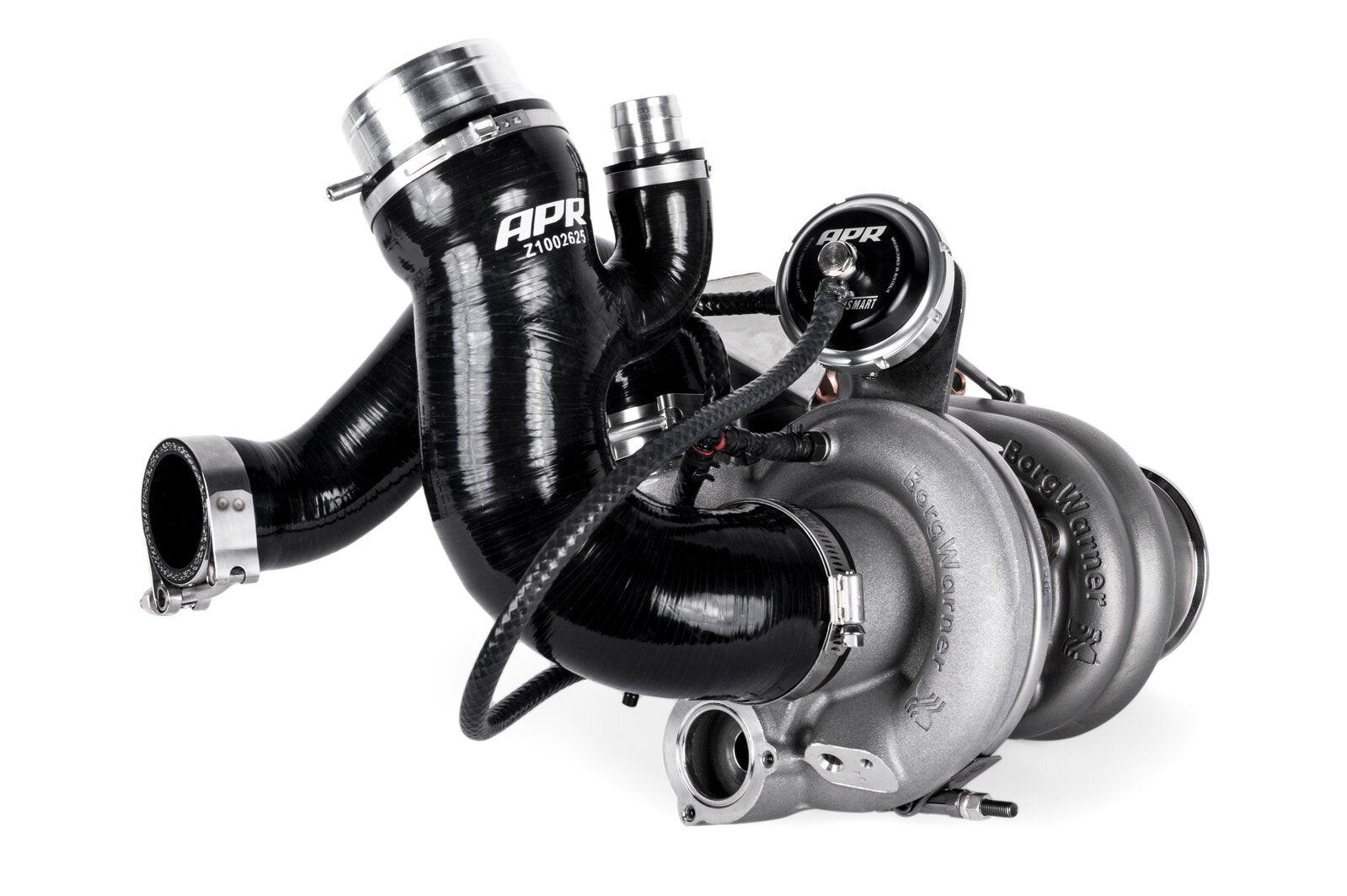 APR Presents the EFR7163 Turbocharger System for the 2.0T EA888 Gen 3 engine! The APR EFR7163 Turbocharger System produces up to 536 HP and lays down 10-second quarter mile passes, all through a convenient and affordable, turn-key solution. It represents a threat to the establishment of turbo four cylinder vehicles of yesteryear, and breaks the hearts of muscle cars and exotics everywhere as they are left in the dust by an engine a third the size of theirs, screaming a turbocharged battle cry as it passes. It is a vicious beast, yet a beast easy to tame. It makes for a civilized daily driver that quietly sips premium fuel with surprisingly excellent mileage. Deceivingly quick transient response, with near stock-like turbo lag makes for an experience devoid of the compromises many would expect from an engine this size. It is the answer to the desire for more power, and it's the brainchild of APR's talented engineering teams, with over a year and a half of initial development, and a never ending drive for perfection. It is easy to install, blisteringly fast, and produces an absolutely exhilarating driving experience!