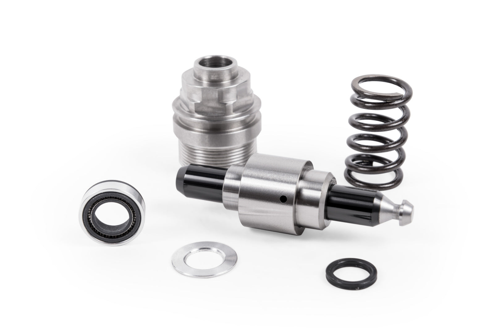 The HPFP internals must be machined to extreme tolerances and installed in a clean environment or the pump can easily fail. Dimensional tolerances on the APR HPFP are as tight as .00004" and geometric tolerances are as tight as .00005". The plunger and barrel are created from certified and heat-treated bearing-grade stainless steel and the plunger undergoes a special diamond like coating process for exceptional surfaces hardness and ultra-reliable operation. To prevent float associated with altering the plunger's mass, APR supplies each unit with a properly specified spring. All internal seals are replaced, including the spring seal, and the tip of the pump retains the factory pivoting head to reduce cam follower wear and piston side loading.