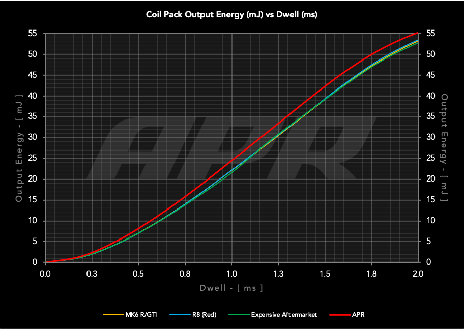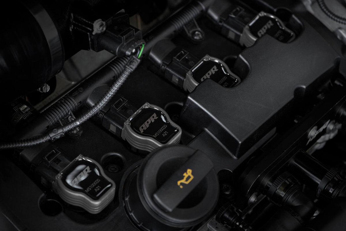 APR Ignition Coils are designed to be a direct plug-and-play upgrade to factory coils, and provide greater energy output, ensuring a stronger and more consistent spark. The commonplace replacement of factory ignition coils with those taken from the higher output Audi R8 is popularly believed to provide greater energy output. However, testing proves that they are no more powerful than the factory coils that are found on other engines. APR Ignition Coils increase energy output by up to 10% over stock. They are a direct upgrade or replacement, and come with a unique Red housing!
