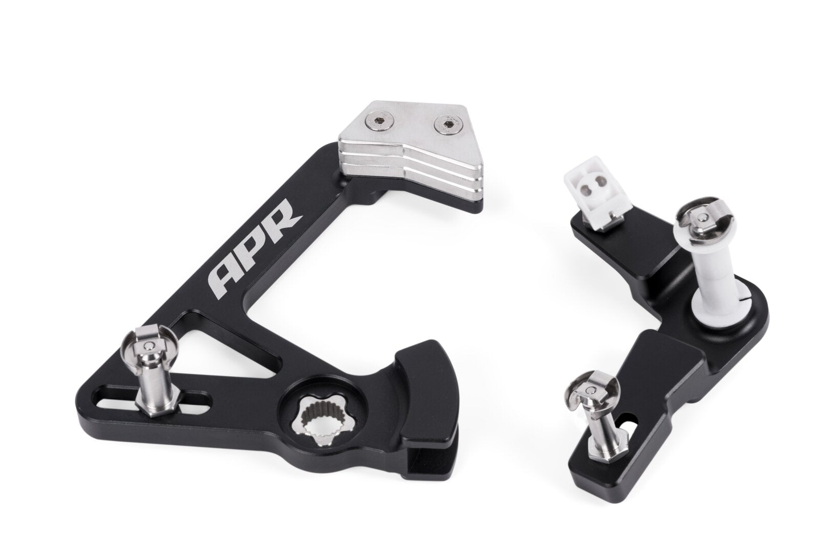 The APR Short Shifter System is a comprehensive upgrade to the factory gear shifter assembly and is designed to reduce shifter movement, in all directions, while simultaneously improving shift quality. The system provides fine tuning of front-to-back and side-to-side movements to shorten shifts, counterweight adjustments for enhanced shift quality, and upgrades the weak points of the factory setup to provide years worry free use. The upgrade is simple, easy to install, easy to adjust, and leaves the driver spending less time shifting, and more time accelerating to victory. To APR's engineers, it's the ultimate solution, but to the driver, it just works!