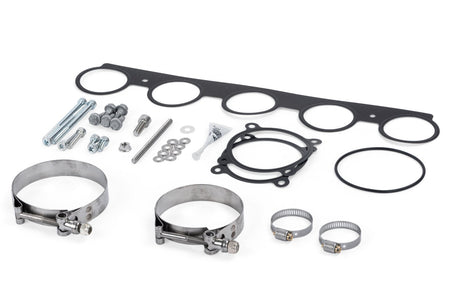Our system does away with two potential boost leak points thanks to our single cast design. We've upgraded the factory rubber intercooler outlet hose to a multi-ply wire-reinforced silicone design with strong t-bolt clamps that resist boost leaks better than their stock counterparts. Our new billet throttle body to manifold adapter provides a convenient boost and vacuum reference point which can be used for a gauge, or anything else in that suits your build. Lastly the system comes complete with new throttle body and intake manifold gaskets, which are common problematic leak point many never know to address.