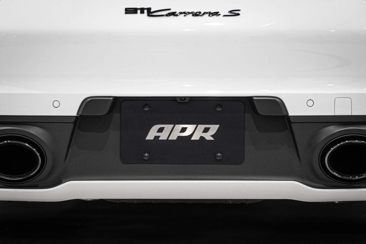 APR license plate frames and vanity plates are the perfect addition for any APR-tuned vehicle! They are made from sturdy and rust-resistant T304 stainless steel. They are thick enough such they won't flop around like throw-away handouts you find in a typical swag bag at car shows. They feature a fade and scratch-resistant black powder-coated finish with laser etching for the APR logo. Anti-vibration backside plate tabs keep it firmly in place. Four slotted install holes give you the perfect fitment with a solid connection to the car. The nice hardware hiders give it a clean finish too, hiding your unsightly plate screws. Fitment is universal, and the slimline plate is US DMV compliant. Some have said this product will increase the value of the vehicle, while others have made horsepower gains, but we can't comment on either.