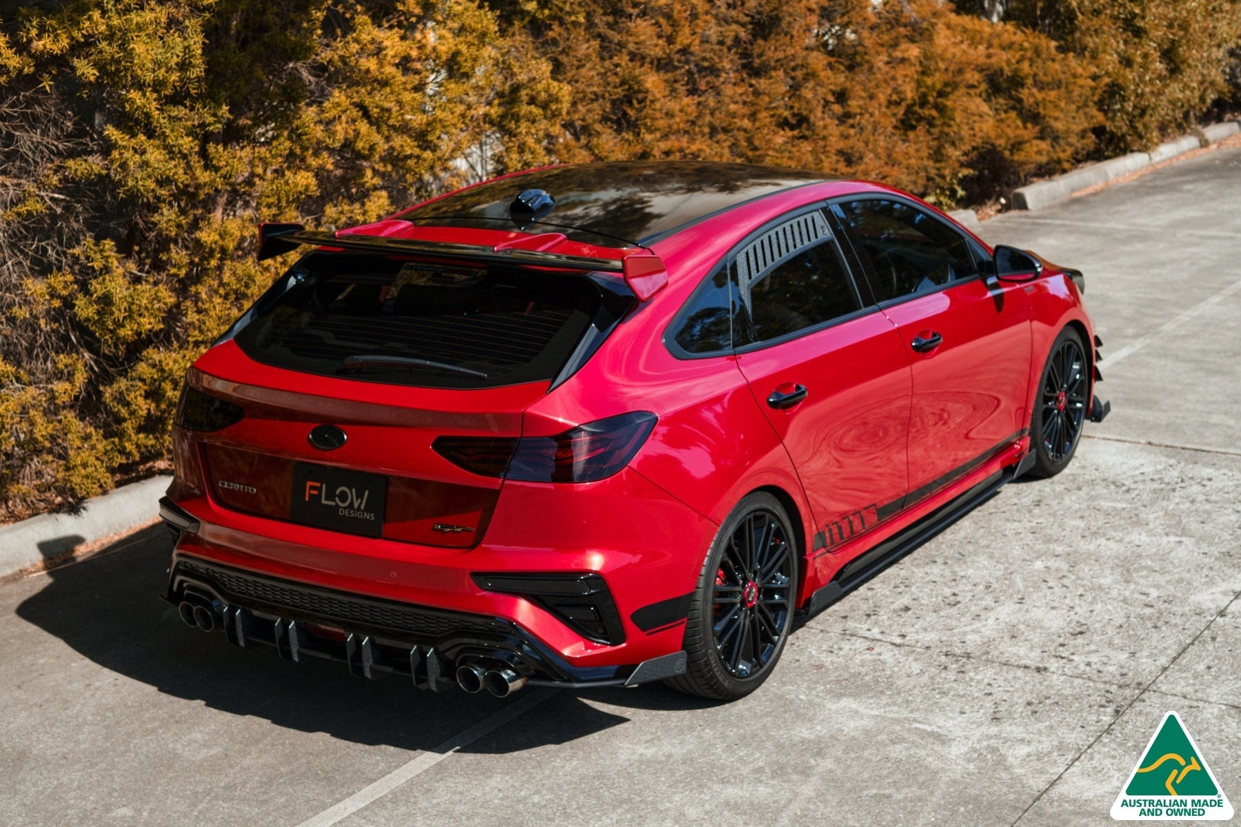 Experience Flow-Lock rear diffuser for your Cerato GT Hatch PFL, sharing the same durability and technology as our renowned WRX, Golf GTI and Focus RS line up - trusted by many car enthusiasts worldwide. The rear valance and diffuser fins will clear the Cerato GT Hatch PFL double exhaust tips with ease, and rear bumper removal is not necessary for installation of the diffuser.