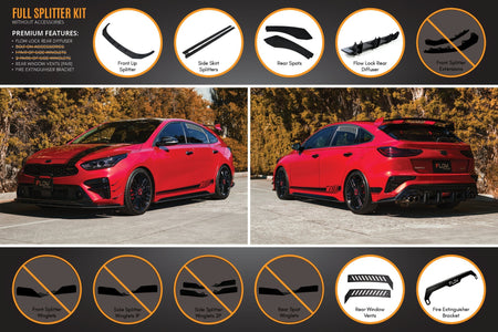 Please note you are receiving a special price when you purchase the Kia Cerato GT Hatch PFL full lip splitter set.