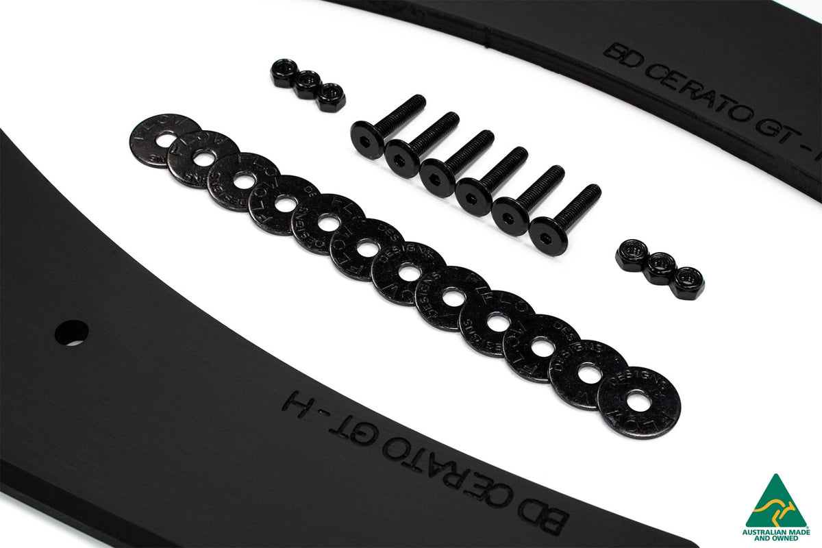 Complete the aggressive aesthetic of your Cerato GT Hatch PFL rear with a pair of our rear spats - known for their durability and strength. Installation does not require bumper removal! Pre-pressed brass fittings on the rear spats allow for installation of our rear winglets (sold separately) to allow for further customisation to individual taste.