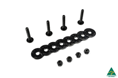 Valance is installed to the car through bolts and nuts while the Flow-Lock diffuser fins simply click into the valance (once locked into the valance it is secure). It is also possible to install when your car is on the ground.