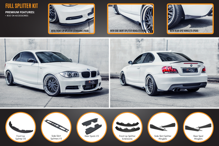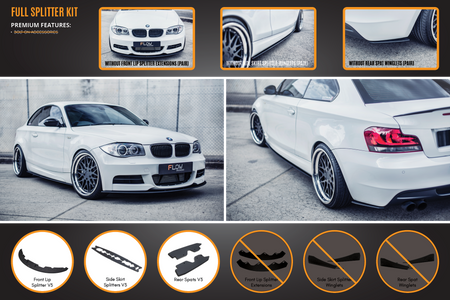 Please note you are receiving a special price when you purchase the BMW E82 M Sport complete body kit splitter set.