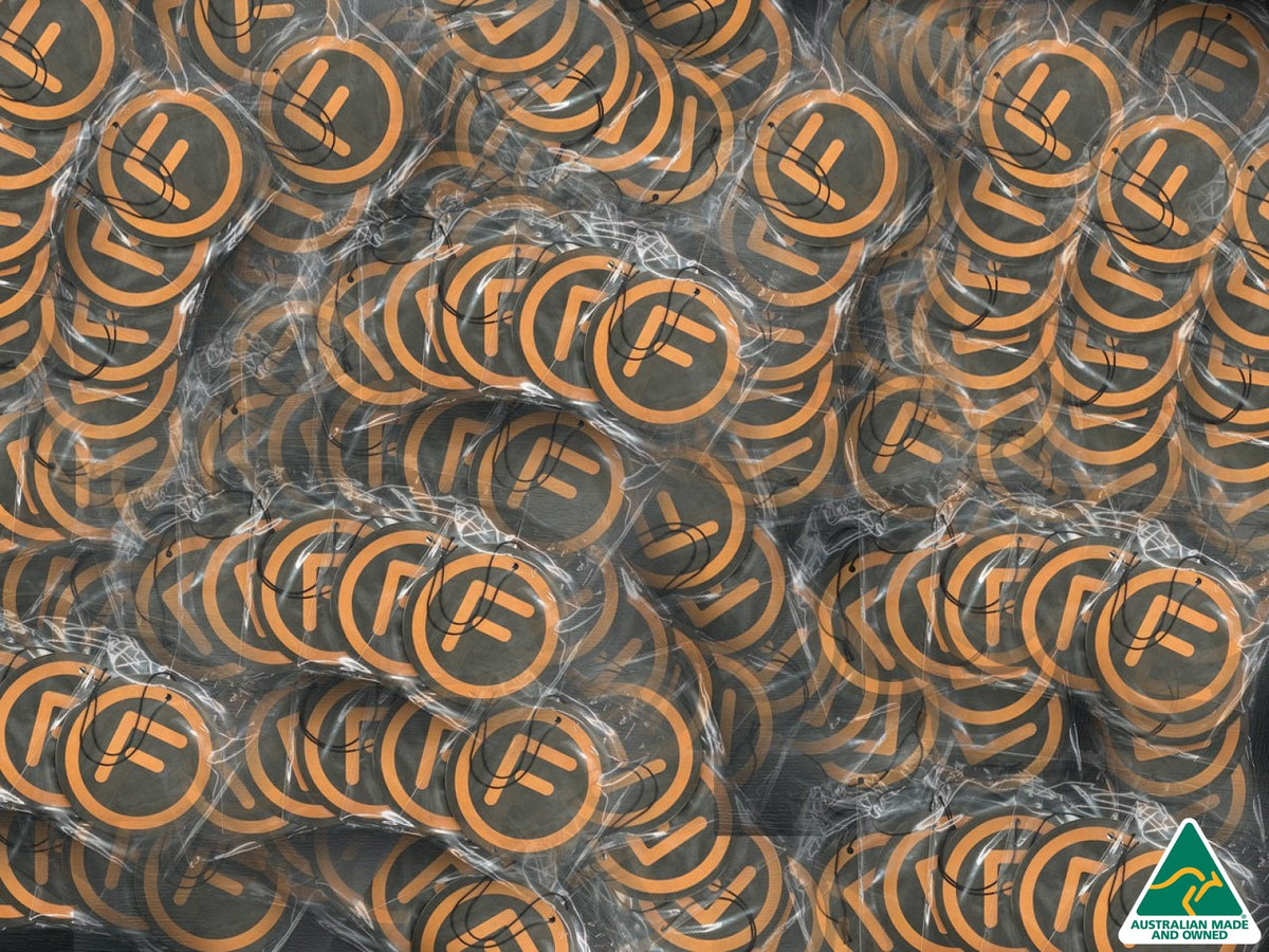Flow Designs Australia new car smell air fresheners delivered sealed with an elastic loop ready to hang.