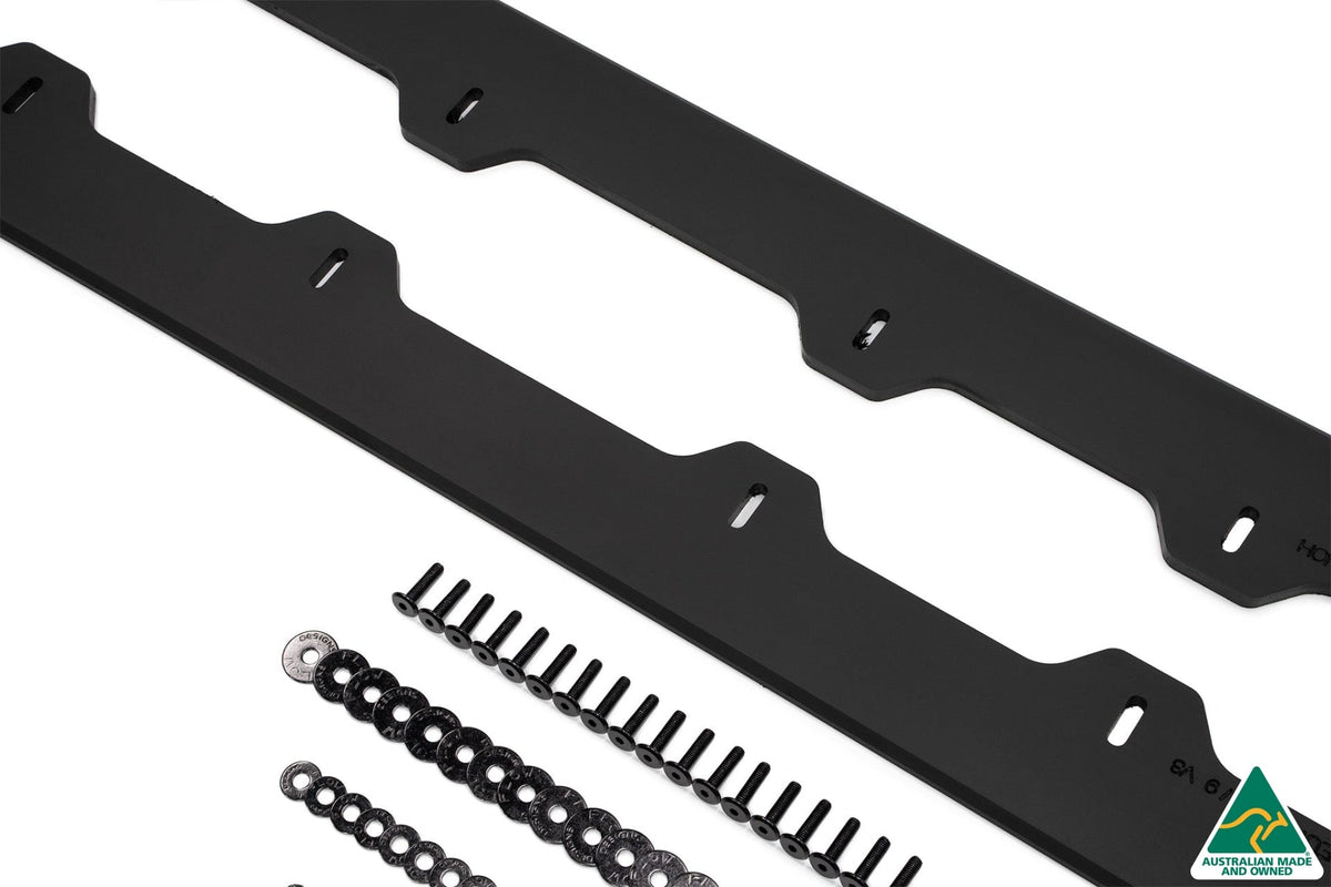 Installation is simple, and to make things even easier, we have pre-drilled all our parts so there is no guesswork for you. We also have designed visual prompts so you know exactly where the splitter is meant to sit in relevance to the OEM side skirt.
