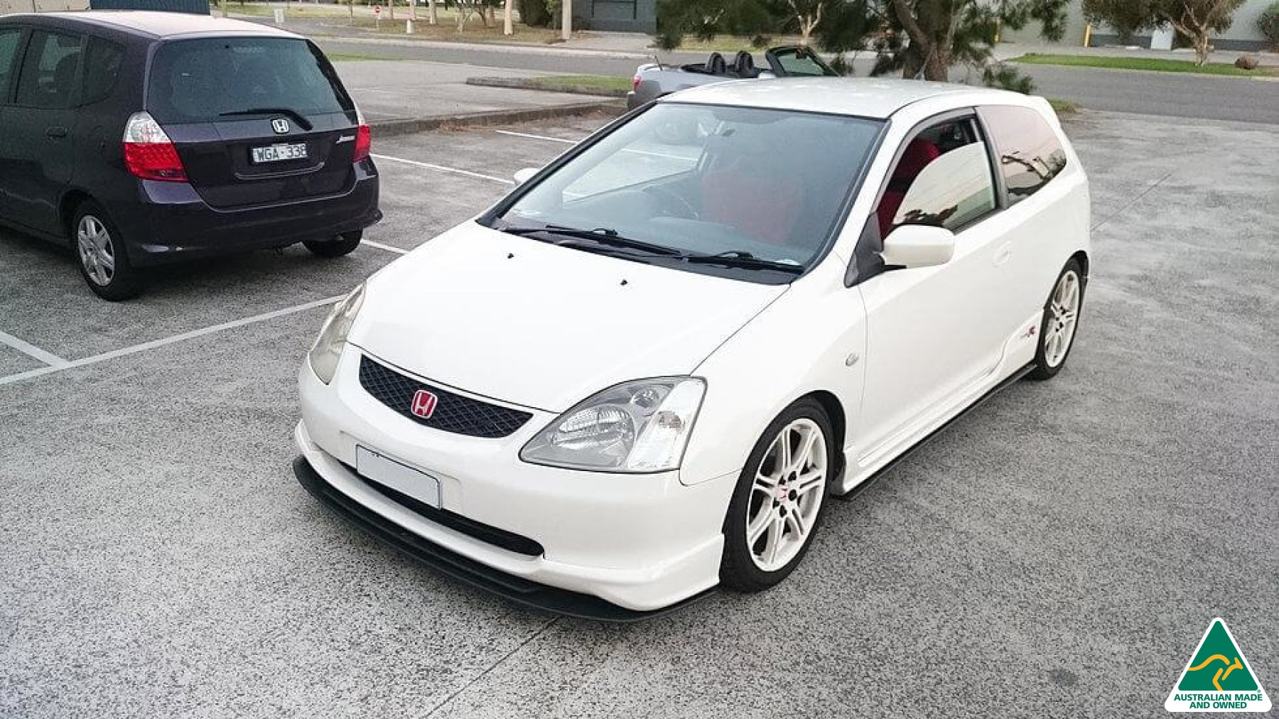 Upgrade the look of your Honda Civic EP3 Type R with the Flow Designs front & side splitters to complete your exterior styling mods. Installation of the 10mm thick splitters is easy & is guaranteed to align perfectly with your EP3 Type R bumper.