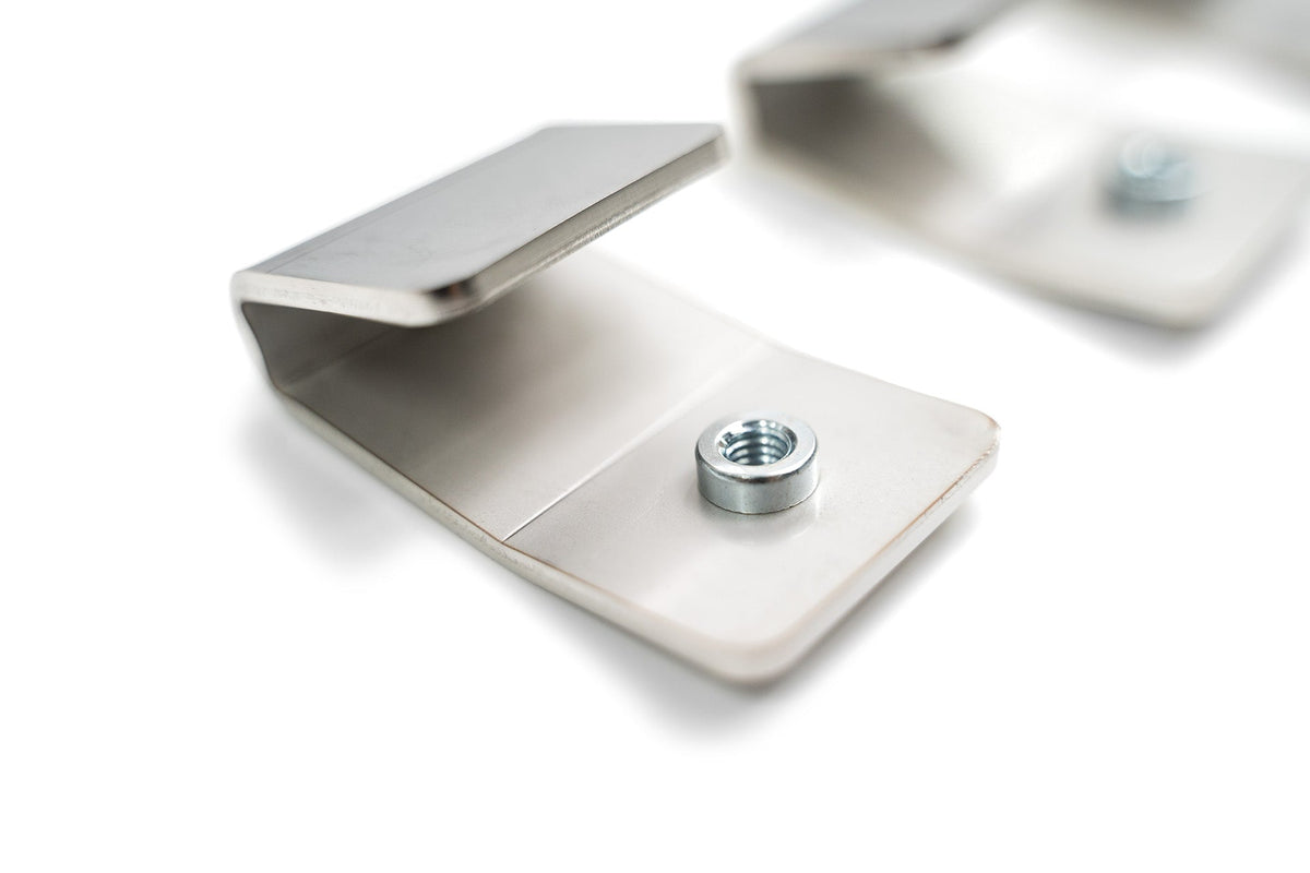 Further customise your front lip splitter with our accessories range (sold separately), which includes adjustable front extensions and front winglets. These can be installed in our pre-pressed brass fittings already installed on the splitter, the adjustable options allows you to match the width to the wheels of your i20 N BC3.