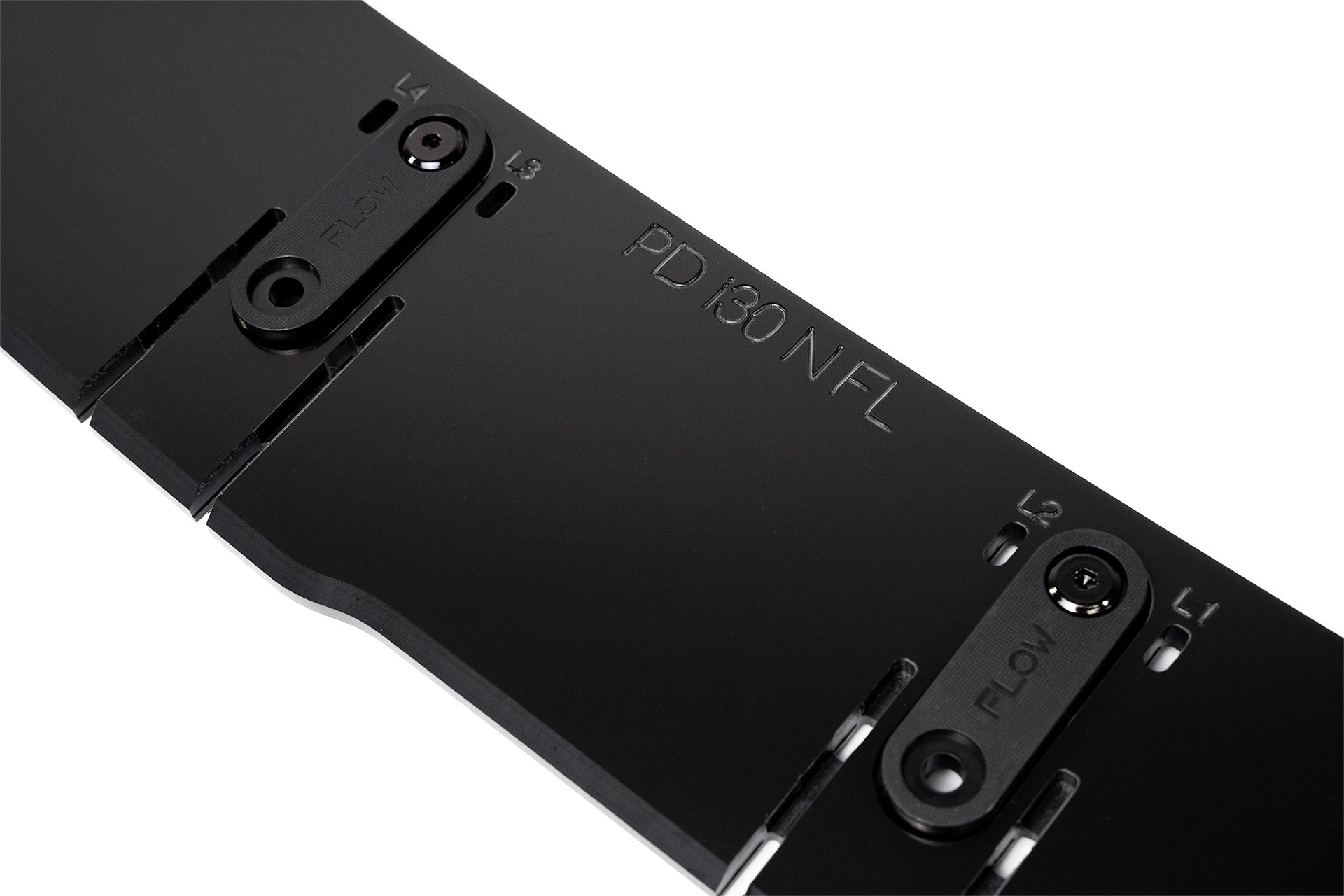 - Flow-Lock diffuser fins: 4.5mm thick textured scratch resistant ABS plastic with CNC engraved logo and features