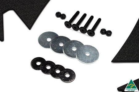 Valance is installed to the car through bolts and nuts while the Flow-Lock diffuser fins simply click into the valance (once locked into the valance it is secure). It is also possible to install when your car is on the ground.