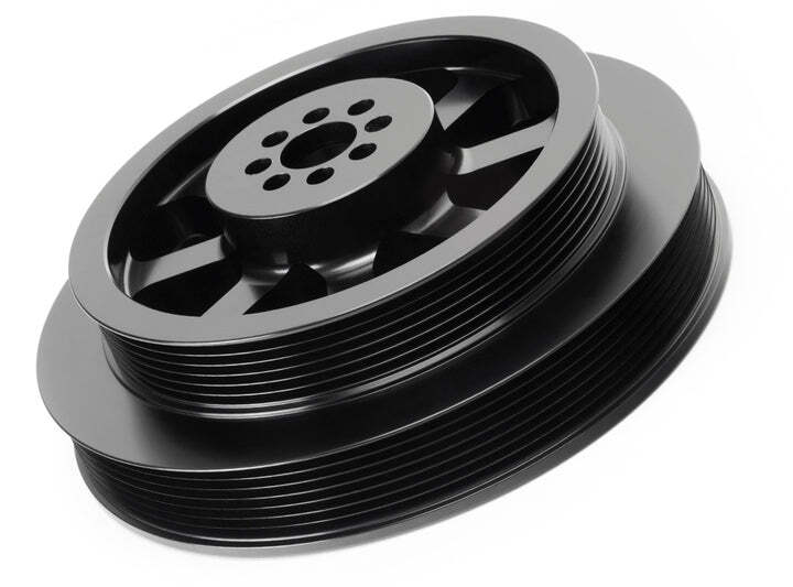 This complete one-piece pulley replaces both the crank pulley and factory engine damper in one unit. Replacing the engine damper provides increased reliability and protection from a possible faulty stock engine damper that is known to separate, causing costly engine damage.