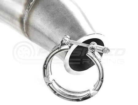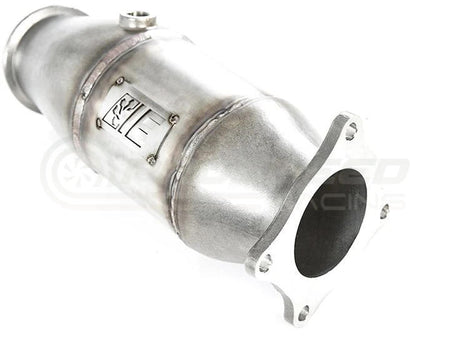 IE’s performance downpipe includes a high-flow 200 cell per inch metal matrix catalyst located as close to the turbo as possible. Metal matrix catalysts are higher performance because the matrix web is thinner, allowing higher flow in the same size. Our catalyst is also a very large diameter, allowing a large flow area and maximum power. By being placed close to the turbo, emissions and unwanted unpleasant smells are greatly reduced.