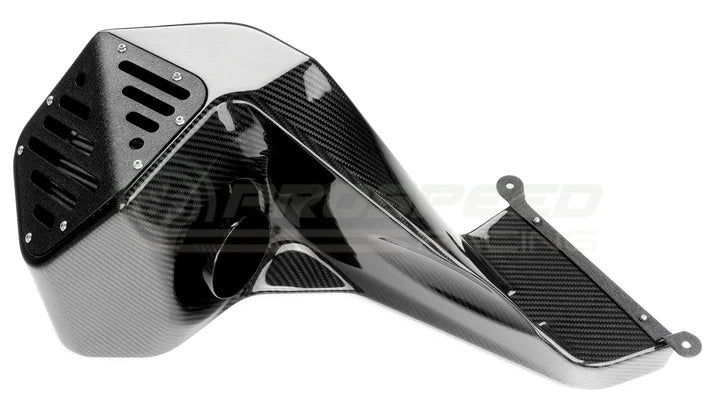 - Carbon airbox high & low-pressure zones channel low-temp airflow quickly to the engine while protecting it from radiant engine heat.