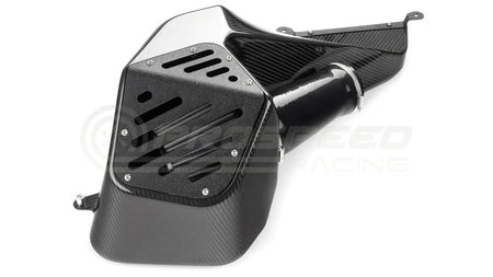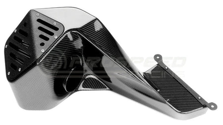 Carbon fiber allows our engineers to create complex shapes and angles to maximize internal volume while maintaining high resistance to heat. This design practice utilizes every millimeter available in the engine bay, providing a much larger air supply and smooth flow.