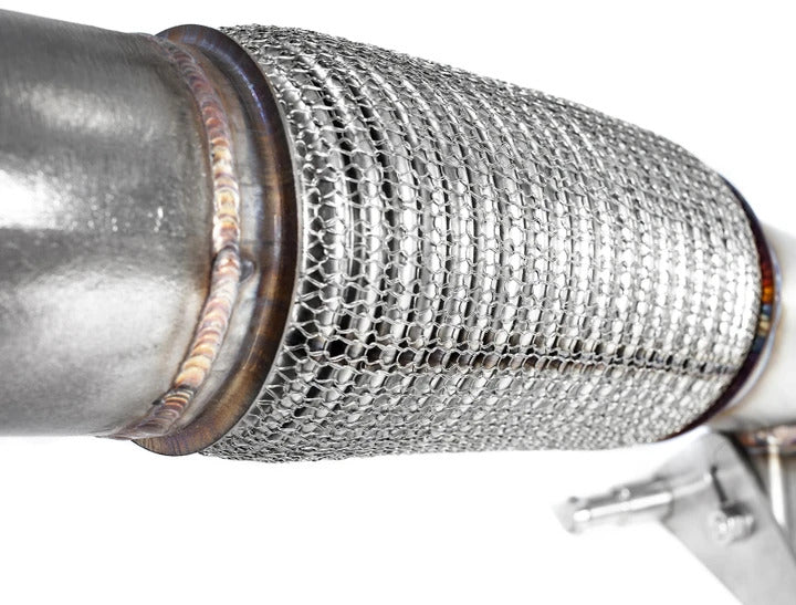 Often times the most common fail point of any aftermarket performance downpipe is the weak flex section designs. Chassis and engine movement coupled with the forces applied from aggressive track and racing environments puts a lot of stress on typical flex section designs that lead to exhaust leaks and eventually -completely failed and separated downpipes.