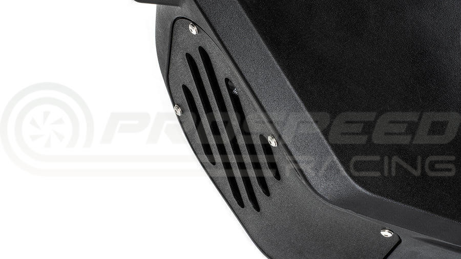 Multiple air supply avenues are used to guarantee airflow for any power level. High-pressure flow from the grille directly provides a ram air supply to the filter. If additional air demands are required, the intake will pull low-pressure air through the filter plate louvers as needed. This dual-zone design ensures your intake will never be a power limitation for even the most extreme builds.
