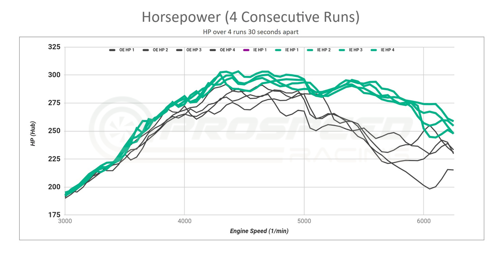 The power increase is dependent on the tune or turbo setup and the boost levels that you are running. Tuned ECUs and larger turbo setups run higher boost pressure, higher boost yields larger gains with the IE FDS intercooler.