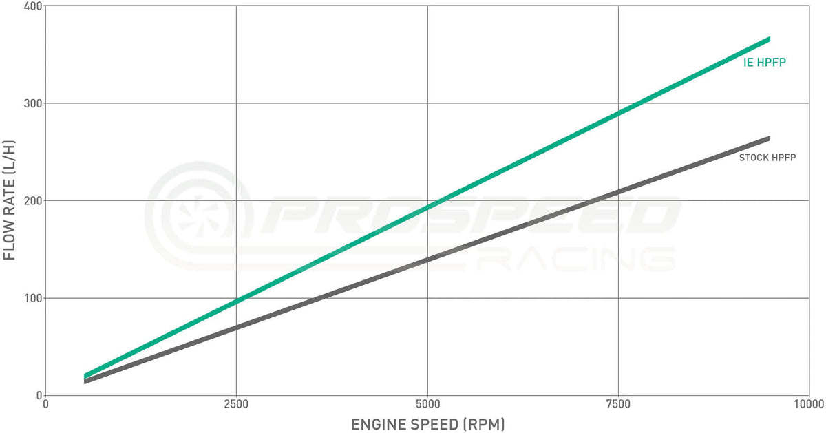 Upgrading to IE's HPFP reliably increases the flow rate of the high-pressure pump for more tuning headroom to increase power safely. The result is a maximum gain of 38.58% over stock!