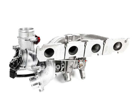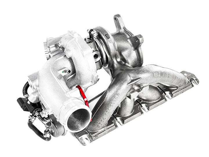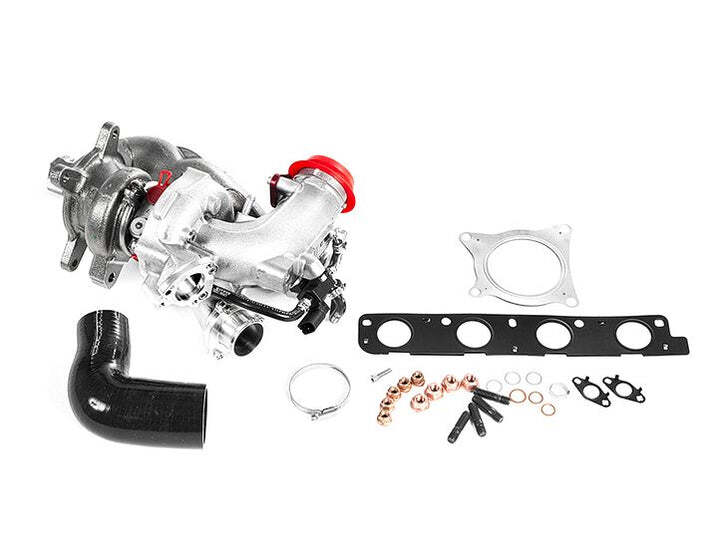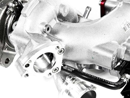 This turbocharger is an OEM turbocharger from the MK6 Golf R. We then modify it to place the diverter valve in the OE location so the fitment is exactly like stock for an easy install.