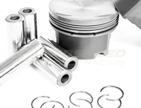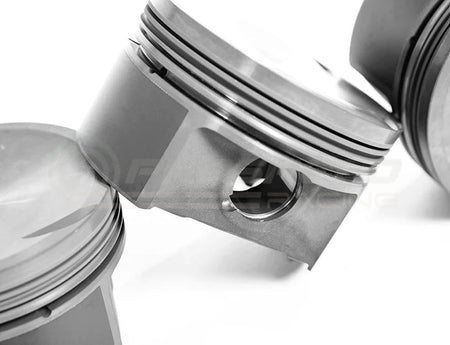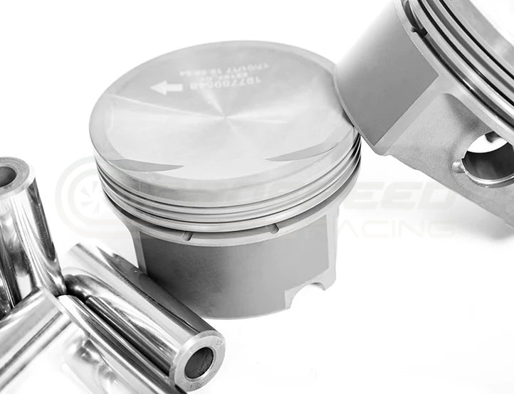 These piston sets include high-quality 22mm diameter German steel wrist pins and wire locks. Strenuous testing of multiple pin sizes on this piston and engine combination has determined the 22mm pin is ideal for weight, strength, and durability. To match these pistons, a 2.5L specific connecting rod with a non-tapered 22mm small-end is required. IE offers industry-leading performance Tuscan connecting rods (IERTVB1) that are a direct fit and perfect match for your 2.5L 5 cylinder bottom-end build.