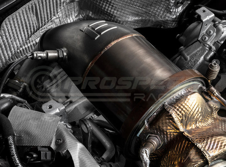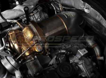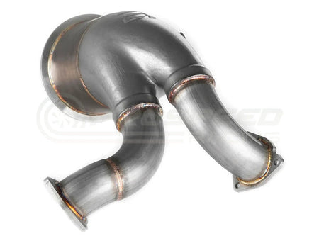 IE's downpipe includes a high-flow 200 CPSI catalytic converter. This performance CAT allows for full and unrestricted power from Stage 2 ECU tunes and hybrid turbo upgrades while reducing emissions output and eliminating unwanted smells and bumper stains found on cat-less designs.