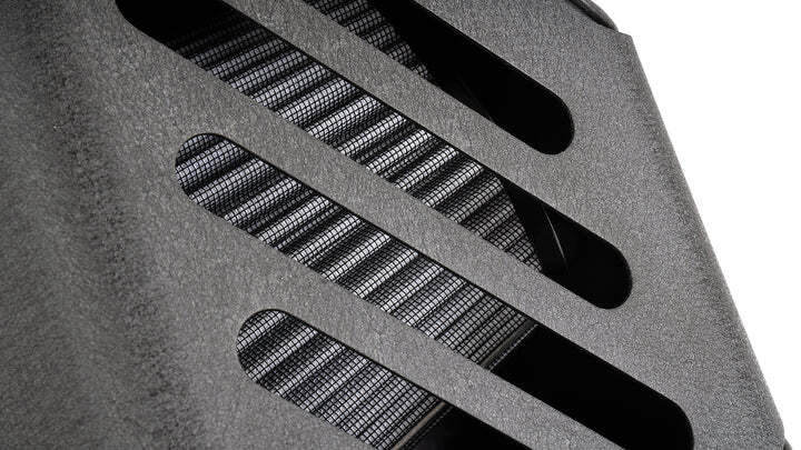 IE's multi-zone intake design delivers all the performance benefits of an open-filter intake while maintaining protection from hot engine bay air from under the hood. A constant ram air supply is forced in from the grille inlet, while any additional air demands are supplied from the low-pressure zone through the filter plate louvers. This dual-zone approach ensures airflow demands for any power level, even the most extreme builds.