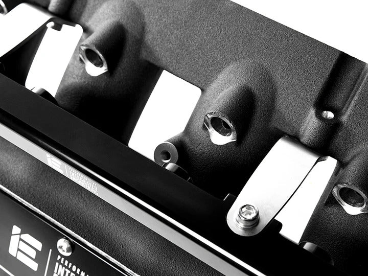 - To complement the impressive performance of the manifold design, IE engineers have taken special care to make a visually appealing piece that not only compliments but enhances the look of any engine bay. The beautiful USA cast aluminum surface is powder coated with a satin black finish then all surfaces and ports are machined for an impeccable contrast. The easy to clean powder coat will ensure the manifold stays looking nice for a lifetime.