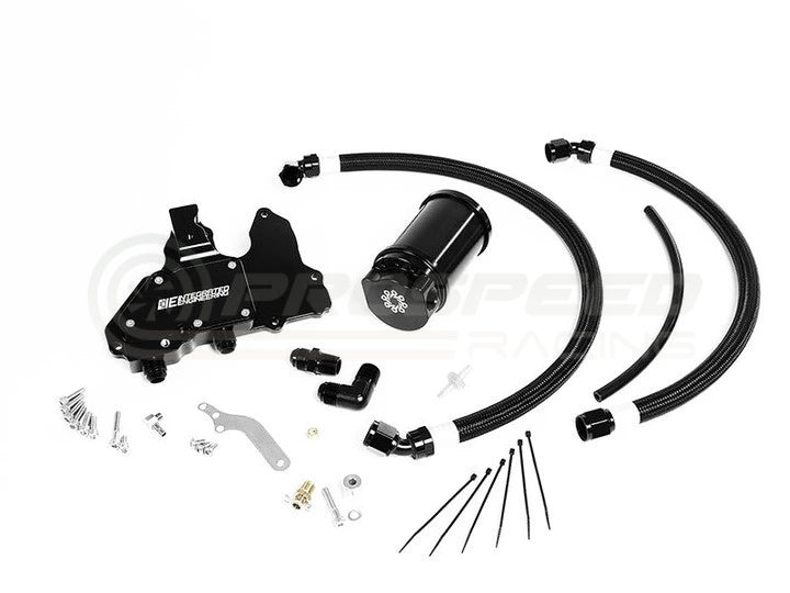 This IE catch can kit uses a secure mount on the OE engine mount bracket to secure the catch can. Many aftermarket motor mounts delete this mounting location and will require you to custom mount the catch can itself. If you are running aftermarket motor mounts, please verify if you have the mounting provision before purchasing.