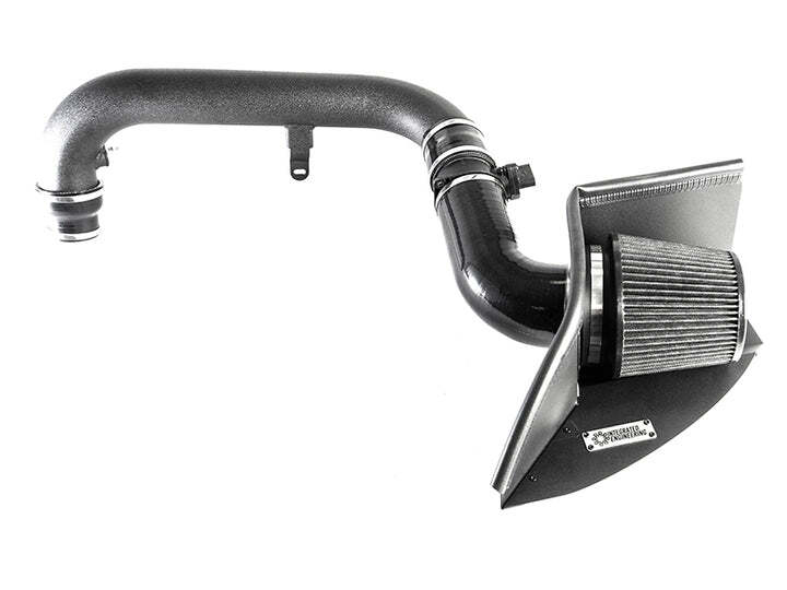 IE's direct-fit high-flow air Intake is included to supply cold air directly to the turbocharger via generously-sized inlet pipe and massive 5" velocity stack. The velocity stack is neatly housed in a heat shield, which separates the air filter from the hot under-hood air, allowing only cold air directly from the front of the car. Learn More