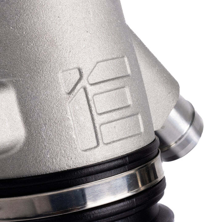 To accomplish the unique shapes and bends necessary for maximum airflow, iE turbo inlets are manufactured from aircraft-grade aluminum castings. This process yields an attractive finish and an incredibly durable product that retains all factory connections and mounts for a seamless install.