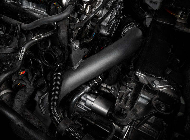 Your stock-equipped turbo outlet pipe comprises flow-killing tight bends and pinched walls that create a severe flow restriction at the most critical part of the charge system directly off the turbo. IE’s turbo outlet pipe replaces the plastic stock pipe with an aluminum performance design mandrel bent to retain a constant diameter for the cleanest airpath possible.