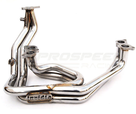 This is the Invidia Equal Length Big Piping Exhaust Manifold. This type of manifold is ideal for those of you looking to surpass large horsepower figures that would otherwise be limited by the flow capacity of the factory exhaust manifold. When shooting for 600+ horsepower, two of the main ingredients that seem to be key factors are a larger piping diameter along with an equal-length design. This, along with smooth bends being used as much as possible within the manifold design, will allow for an unobstructed flow path for the exhaust to exhale the exhaust gases as efficiently as possible for those with even moderate bolt-ons.