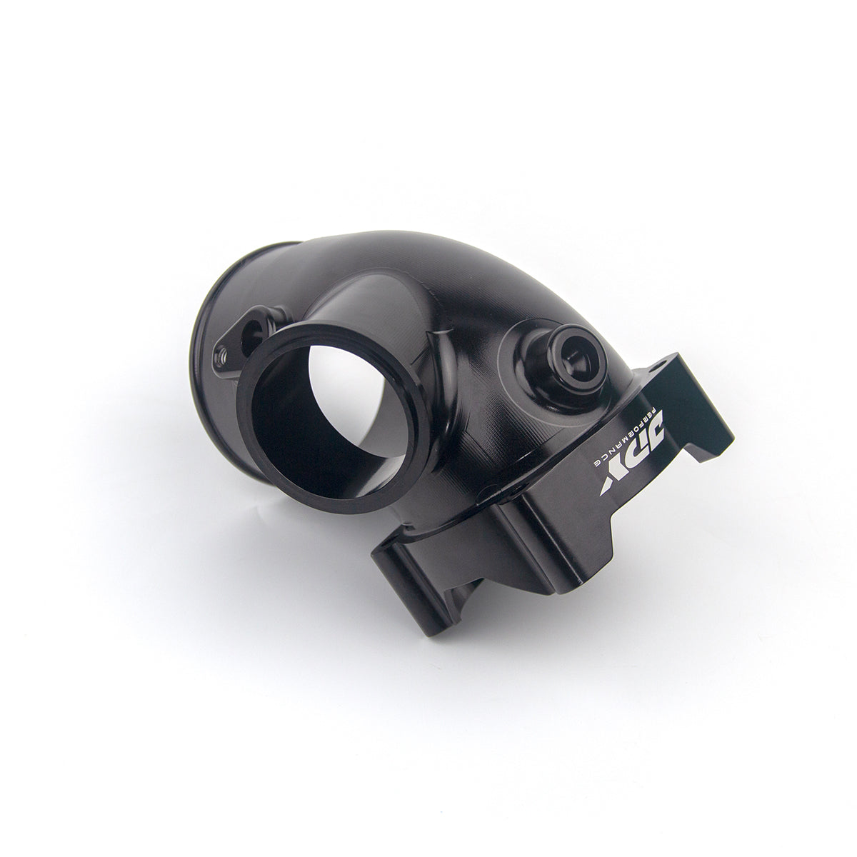 JDY throttle elbow for Audi RS3/TTRS 2.5TFSI is CNC-machined from aluminum billet. The part surface undergoes oxidation and powder coating to achieve a smoother and more corrosion-resistant finish.