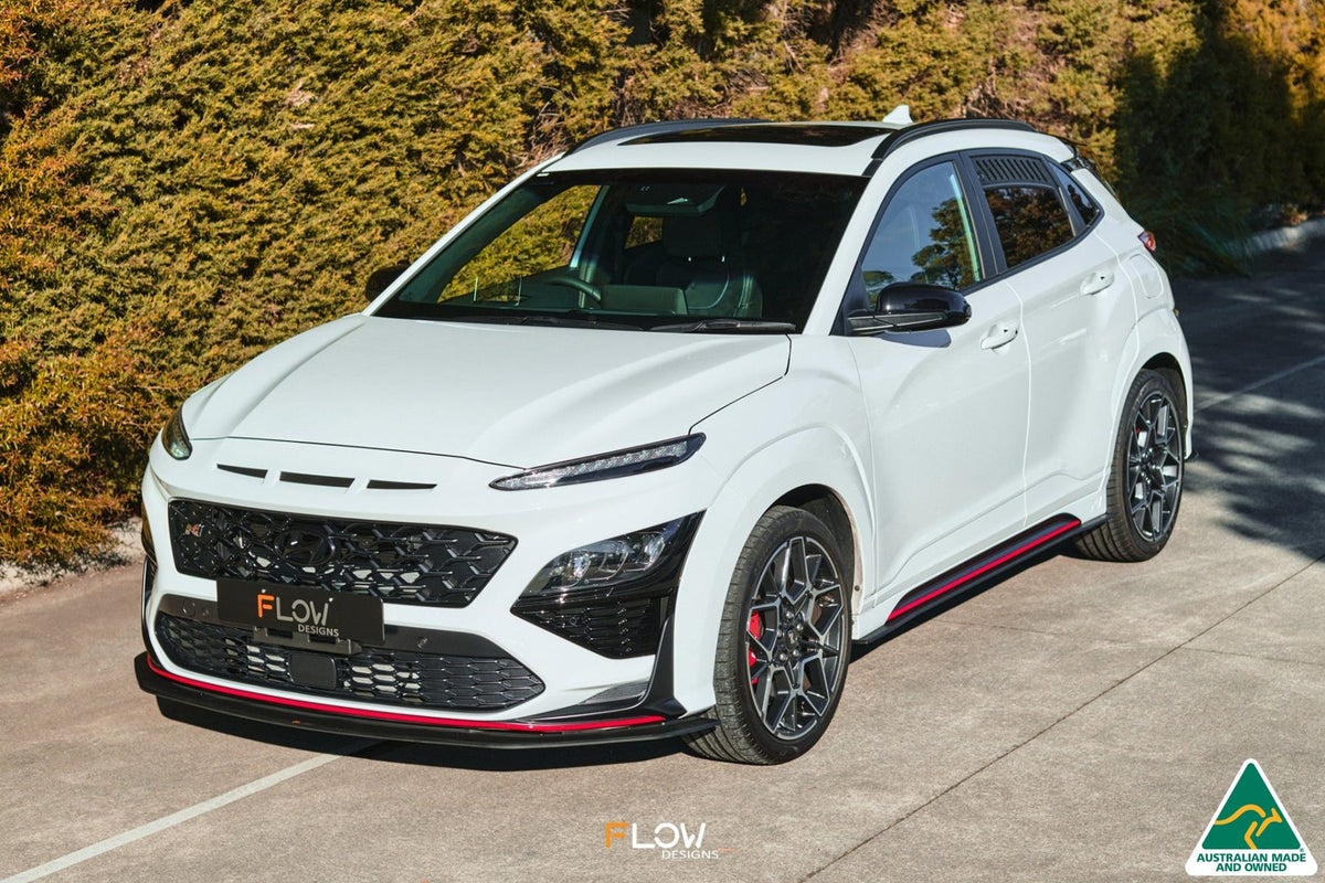 Complete the aggressive aesthetic of your Kona N with our front lip splitter, renowned for their durability under all driving conditions. Further customise your front lip splitter with our accessories range, which includes adjustable front lip splitter extensions and front lip splitter winglets. These can be installed in our pre-pressed brass fittings already installed on the splitter, the adjustable options allows your kit to match the width to the wheels of your Kona N.