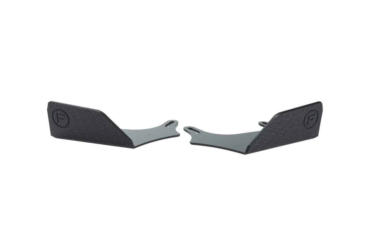 Our adjustable front splitter winglets will bolt directly onto our Kona N front lip splitter thanks to the pre-pressed in threaded brass fittings on our front lip splitter. Fitting kit is provided to ensure perfect fitment and can be adjusted to your liking. Adjustments can be made anywhere between 5mm-20mm on each side increasing the overall width up to 40mm!