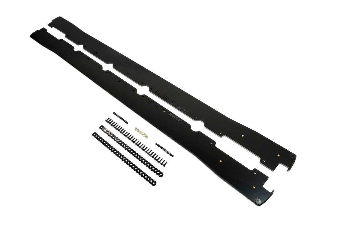 Finish the exterior aesthetic of your Kona N with our side skirt splitters - renowned for their durability under all driving conditions worldwide! Pre-pressed brass thread fittings on the end of each side skirt splitter will allow for the installation of our side winglets (sold separately). Easy install instructions are included and side skirt removal is NOT required.