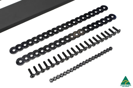 The Flow Designs lip splitter set for Evo X includes 2 front lip splitter variants, side extension splitters, rear pods/spats & rear valance, with optional support rods. The front splitter fits perfectly to the Evolution X factory lip & gives any Evo X an aggressive aero style to match the performance of the vehicle.