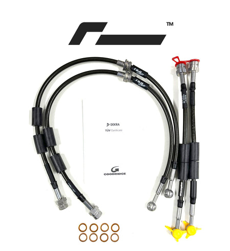 Simply remove the factory rubber pipes and resinstall these uprated lines. Bleed the system and you’re good to go.