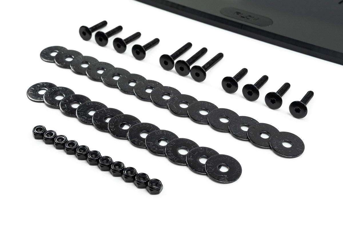 Pre-assembled Aerospacers are bolted down perpendicularly to create a brace that reinforces the splitter and evenly spreads the load from impacts across the surface. It also allows the front lip splitter to follow the body kit contour to keep it flat and level.