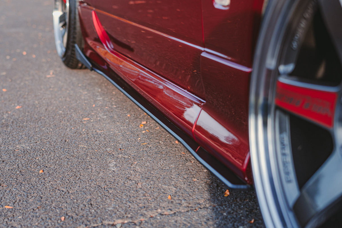 Our adjustable side skirt splitter winglets will bolt directly onto our S15 side skirt splitters thanks to the pre-pressed in threaded brass fittings on our side skirt splitters. Fitting kit is provided to ensure perfect fitment and can be adjusted to your liking. Adjustments can be made anywhere between 5mm-20mm on each side increasing the overall width up to 40mm!