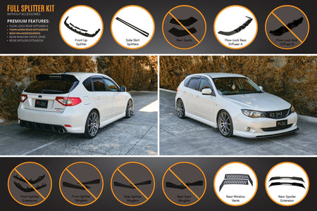 Please note you are receiving a special price when you purchase the Impreza WRX/RS G3 Hatch PFL complete body kit splitter set.